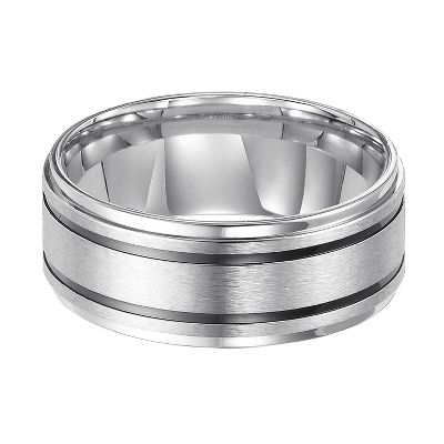 Stainless steel wedding band. From the color of the band to the possible additional features finding the perfect groom wedding band will be sure to make his wedding day even brighter. Mens 80mm diamond accent solitaire comfort fit wedding band in stainless steel and black carbon fiber. Thats why stainless steel wedding bands are such a great choice especially for men.