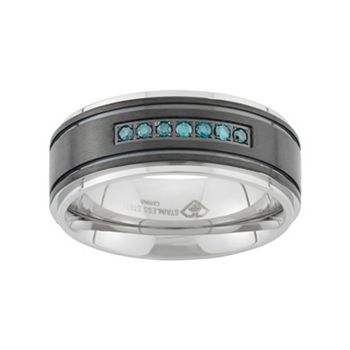 Men S 9mm Wedding Band Diamond Accent Stainless Steel 3144480599 Kay