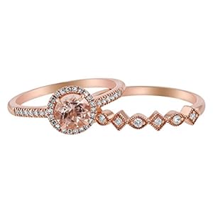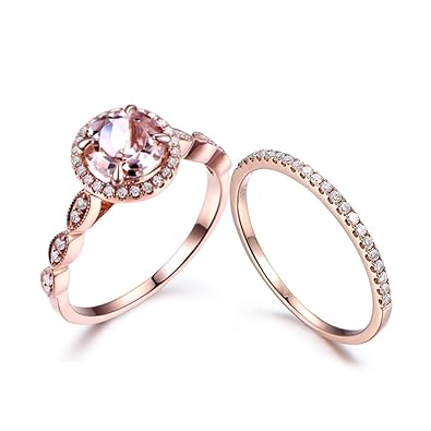 Amazon Com 14k Rose Gold Round Morganite And Diamond Halo Vintage