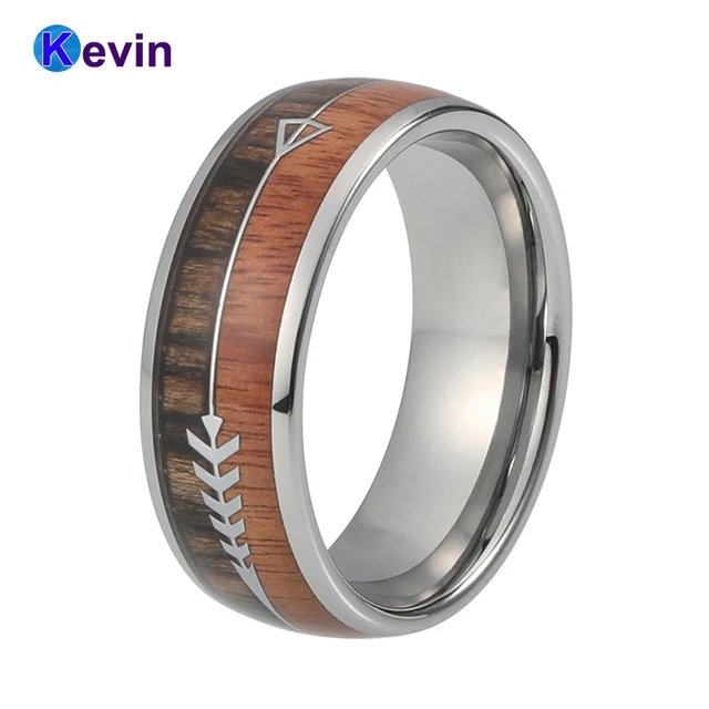Mens Wedding Bands 8mm Vintage Hawaiian Koa Wood Inlay Silver