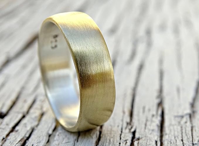 Amazon Com Brass Wedding Ring Domed Brass Ring Silver Mens Ring