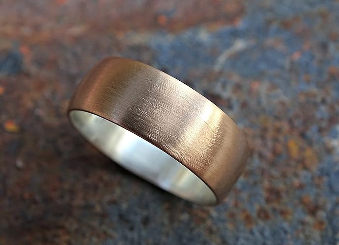 Amazon Com Bronze Wedding Ring Domed Bronze Ring Silver Mens Ring