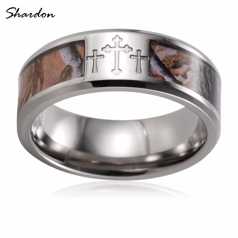 Shardon Three Cross Camo Men Rings 8mm Titanium Mossy Oak Band