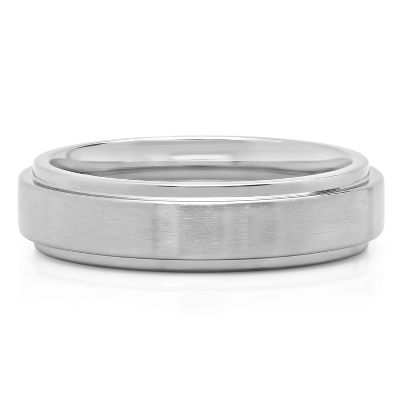8mm Mens Silver Brushed Tungsten Wedding Band With Step Down Edges