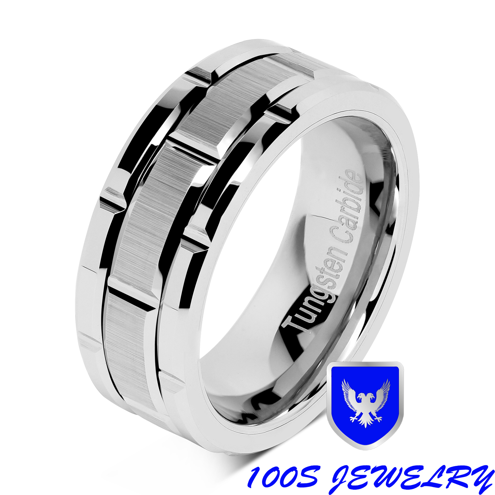 8mm Men S Tungsten Carbide Ring Silver Wedding Band Brick Pattern