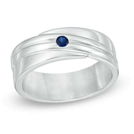 Men S Lab Created Blue Sapphire Solitaire Sterling Silver Wedding