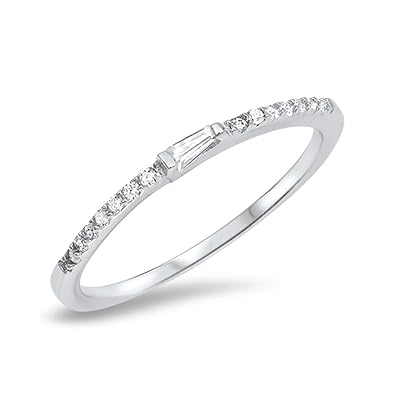 Amazon Com Sterling Silver Cubic Zirconia Simple Wedding Band For
