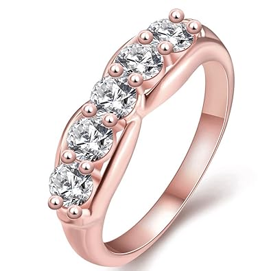 Amazon Com Women S Pretty 4 Cz Stones Plain Wedding Band 18k Gold