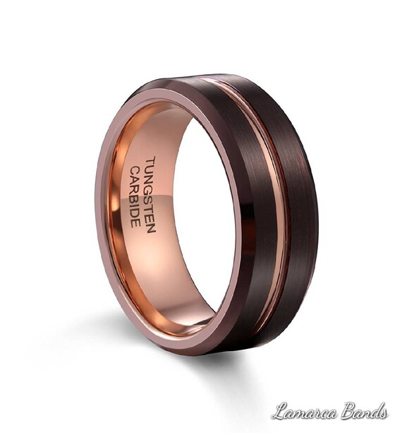 Mens Rose Gold Cappuccino Wedding Band Mens Tungsten Wedding Etsy