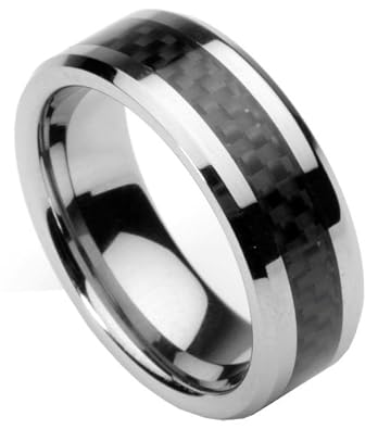 Amazon Com Men S Tungsten Ring Wedding Band With Carbon Fiber