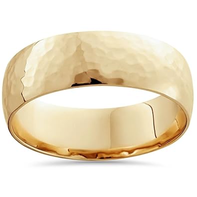 7mm 14k Yellow Gold High Polished Hammered Mens Wedding Band