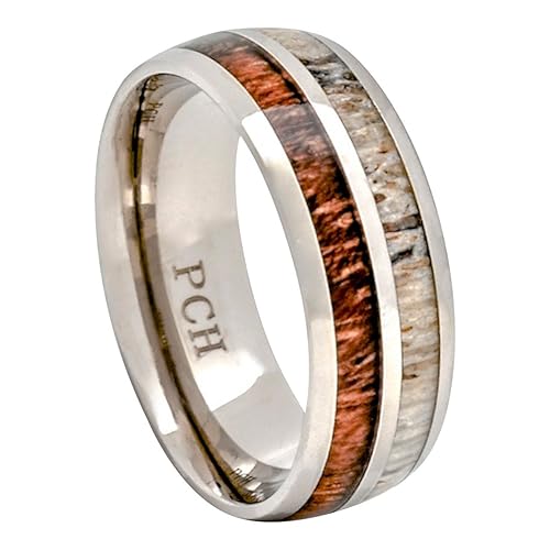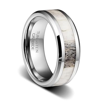Tusen Jewelry 8mm Tungsten Ring Polished Finish Deer Antler Inlay