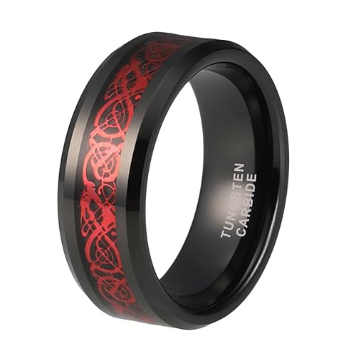 Mens Wedding Band Red Black Wedding Ring Tungsten Ring 8mm Etsy