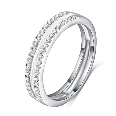 Amazon Com Luckyweng 18k White Gold Simple Half Eternity 2 Row