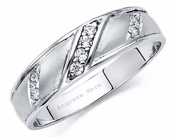 Men S 14k White Gold Satin Finish Wedding Band With Diamond Accent