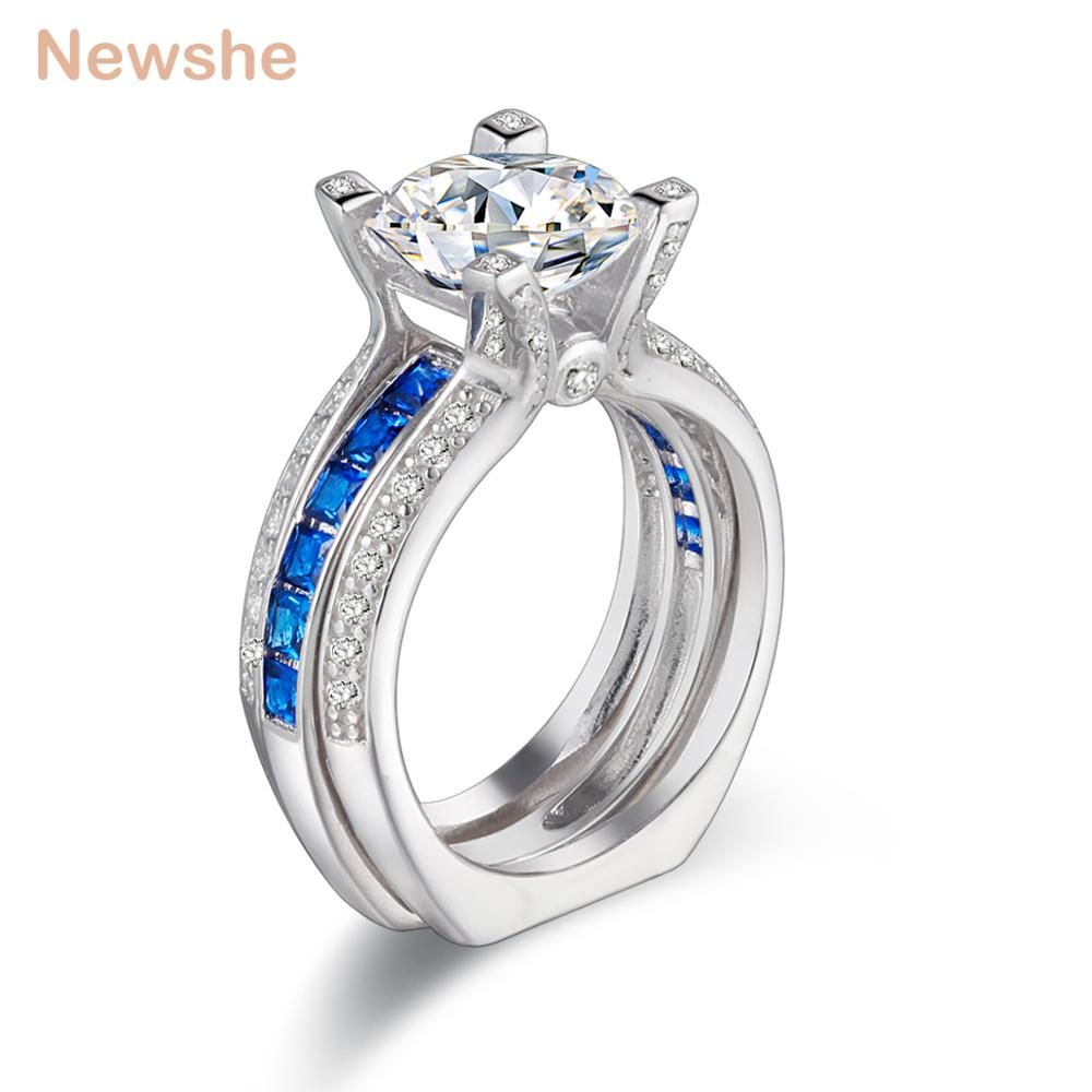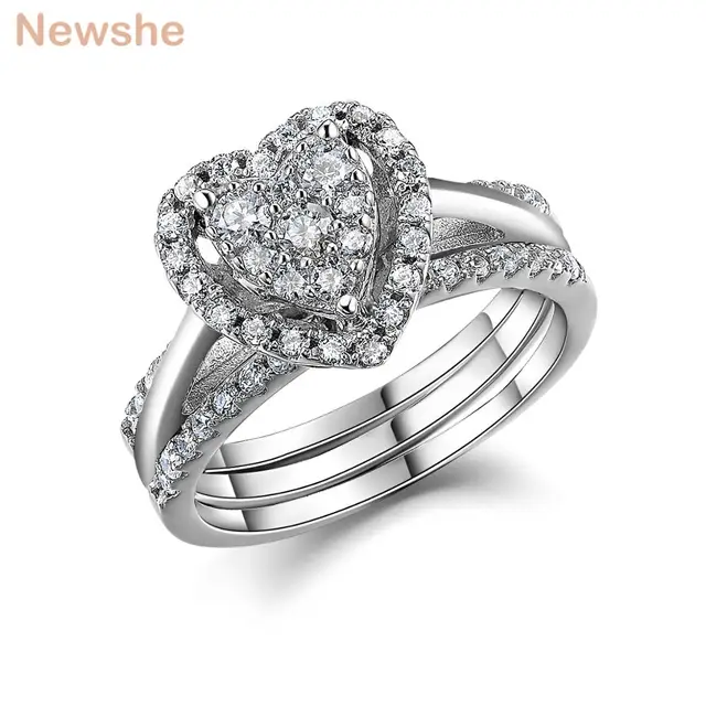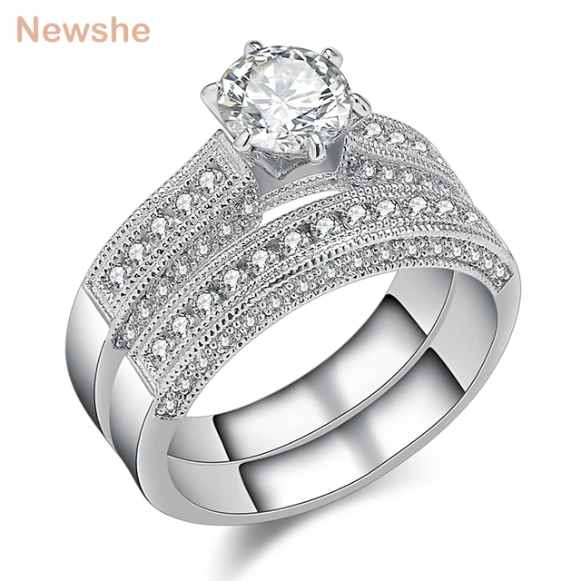 2018 Newshe 1 9 Ct Solid 925 Sterling Silver Wedding Ring Sets