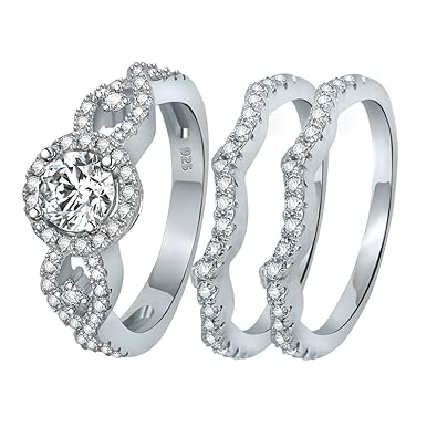 Engagement Wedding Ring Sets Trio Sterling Silver