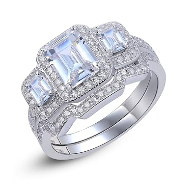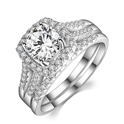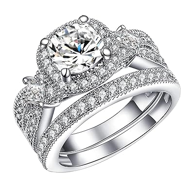 Amazon Com Aoedej Bridal Sets 3 Pcs Cushion Round Cut White Cubic