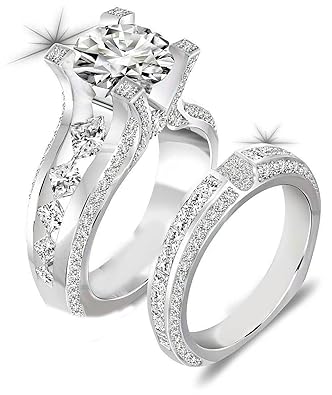 Wedding Accessories Sterling Silver Wedding Ring Set Diamond Bridal