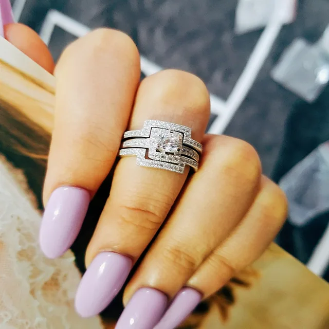 Hot Sale 925 Sterling Silver Three Band Wedding Ring Set For Women