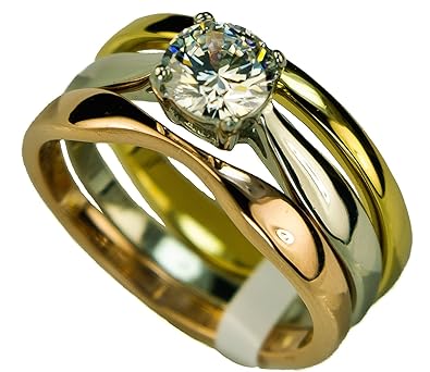 Amazon Com Three Tone 3 Band Wedding Ring Set 2 Carat Russian