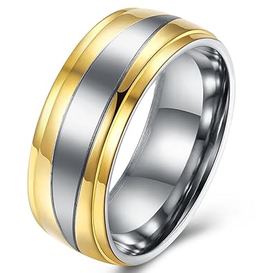 Men S Wedding Band Style Rings Classic 8mm Titanium Steel 18k Gold
