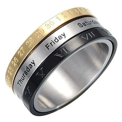 Men S Wedding Bands Vintage Triple Spinner Date Week Roman Numerals