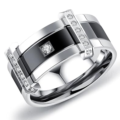 Men S Wedding Band Style Rings 12mm Wide Stainless Steel Tiny Cz