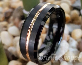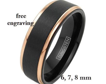 Brushed Mens Wedding Band Tungsten Ring Black Wedding Ring Rose Gold