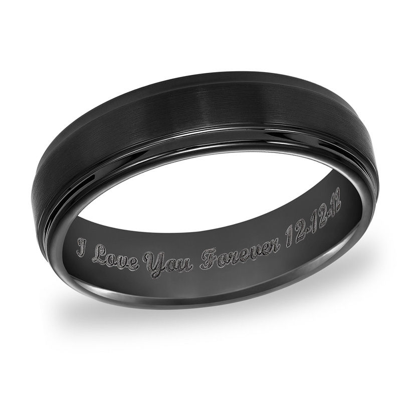 Men S Tungsten Wedding Ring With Black Ceramic Inlay