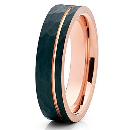 Black Tungsten Wedding Band Rose Gold Tungsten Ring Black Tungsten