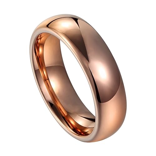 8mm Rose Gold Tungsten Wedding Band Shiny Polish Tungsten Ring