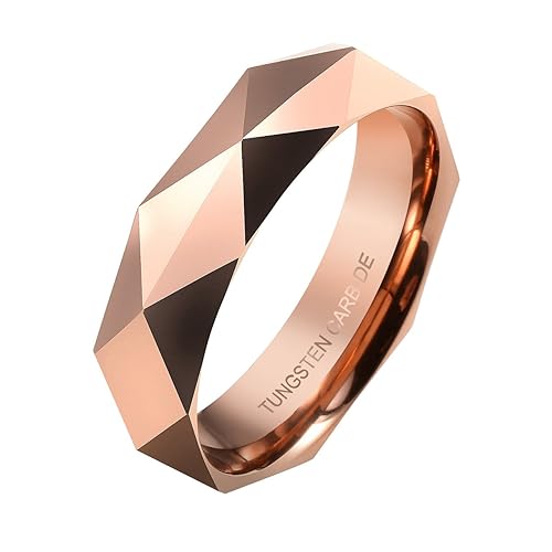 Zysta 6mm Rose Gold Tungsten Wedding Ring Multi Facet Wedding Band