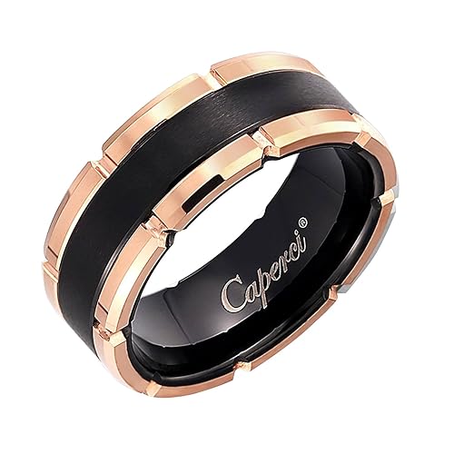 Caperci Men S Black And Rose Gold Tungsten 8mm Contemporary Wedding