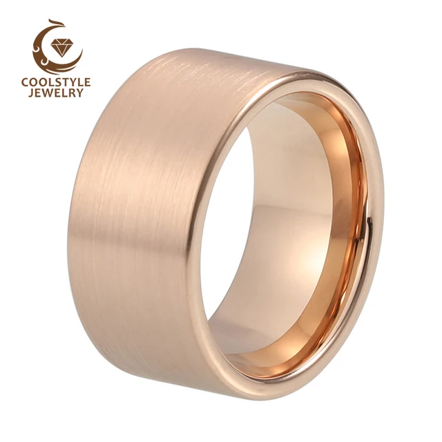 12mm Large Width Men Tungsten Carbide Wedding Band Rose Gold