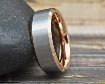 Mens Rose Gold Wedding Ring Tungsten Wedding Bands