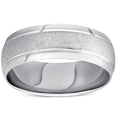 8mm Brushed Mens Wedding Band 10k White Gold Amazon Com