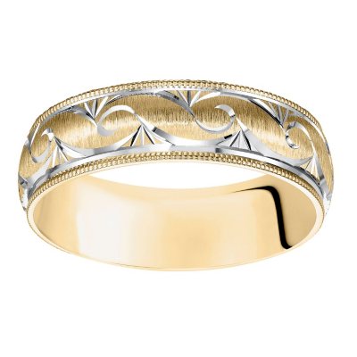 6mm Satin Finish Wedding Band With Milgrain Edge In 14 Karat Gold