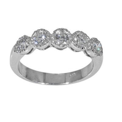 0 97 Ct T W Canadian Diamond 5 Stone Wedding Band In 14k White