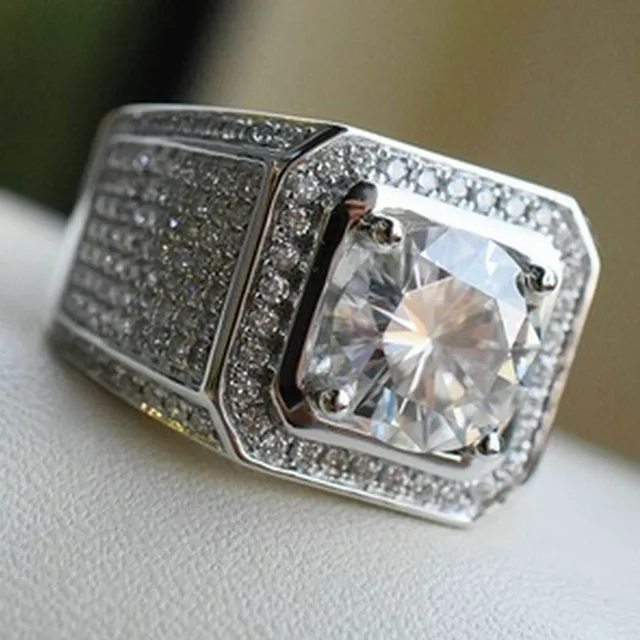 Silver Classic Cubic Zircon Ring Main Stone Simple Business Men S