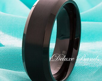 Black Titanium Mens Wedding Band Matte Finish Mens Titanium Wedding