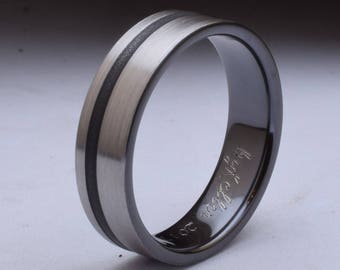 Black Titanium Wedding Band For Men With Grey Edges 6mm