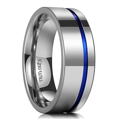 King Will Loop 8mm Thin Blue Groove Silver Titanium Wedding Ring
