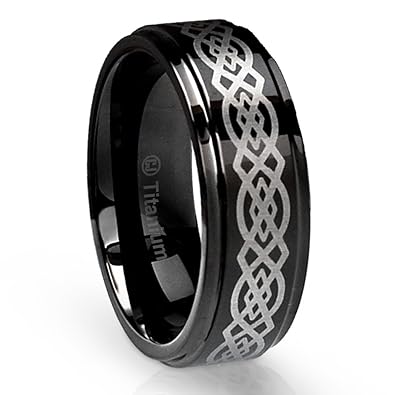 8mm Mens Titanium Ring Wedding Band Black With Celtic Design