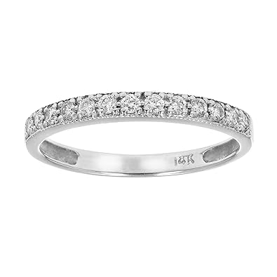 Amazon Com 1 4 Ct Milgrain Diamond Wedding Band In 14k White Gold
