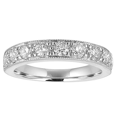 Amazon Com 1 Ct Milgrain Diamond Wedding Band In 14k White Gold