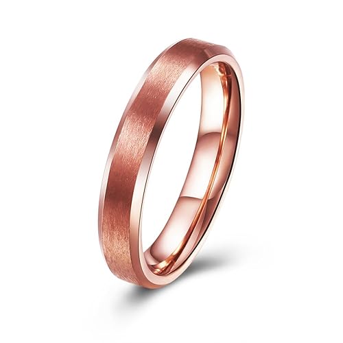 4mm Rose Gold Rings Titanium Women Men Wedding Band Rings Beveled