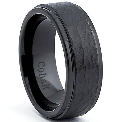 Black Cobalt Men S Hammered Wedding Band Ring Comfort Fit 8mm
