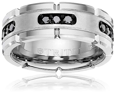 Triton Men S Black Tungsten Ring Diamond Wedding Band 1 10 Ct