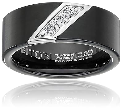 Triton Men S Black Tungsten 8mm Three Diamond Wedding Band 1 10cttw